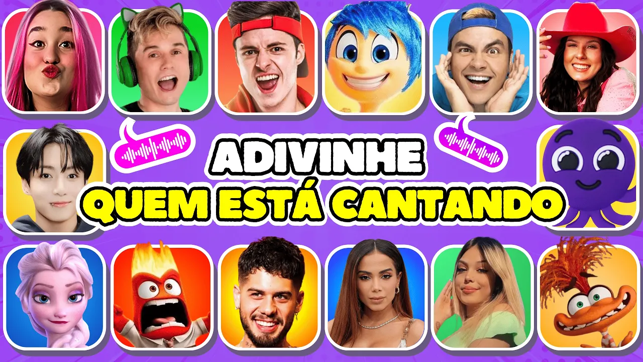 [Música] é são os personagens do divertidamente só cantar mais alto meu amigo número 26 Quem éa curte minha brisa só relax vai te pegar essa é fácil para [Música] você a resposta certa é Virgínia Fonseca mina curte brisa só relax vai te Peg número 20 S Quem [Música] é essa é fácil para [Música] você quem está cantando é o em [Música] cabelinho gostou do vídeo me conte nos comentários eu quero muito saber bora continuar a aventura