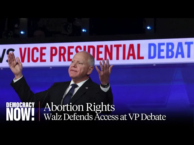 this news is funded by viewers like you please support our work at democracynow.org as we continue to look at last night's CBS News vice presidential debate we turn to the issue of abortion this is Republican senator JD Vance now of course Donald Trump has been very clear that on the abortion policy specifically that we have a big country and it's diverse and California has a different viewpoint on this than Georgia Georgia has a different Viewpoint from Arizona and the proper way to handle this as messy as democracy sometimes is is to let voters make these
