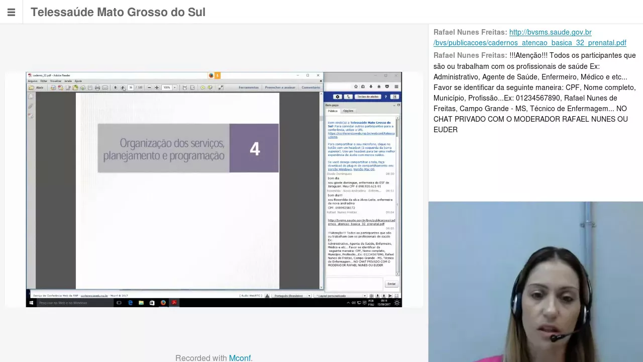 E algum dia pessoal tudo bem com vocês eu sou michelle soltar regulador de enfermagem aqui do telessaúde núcleo técnico mato grosso do sul prazer imenso retornar nossas atividades de teleducação ea demanda de hoje é que nós pudéssemos conversar sobre o material do ministério da saúde que é um dos cadernos de atenção básica que vai tratar sobre o pré natal de baixo risco ou de risco habitual ea motivação dessa Conversa no dia de hoje é demanda que nós temos recebido é de dúvidas e e da necessidade então de uma conversa com 11 enfermeiros da atenção básica