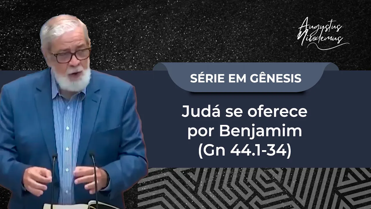 44 de 33 A 34 agora pois Judá se dirigindo a José agora pois que este Seu servo fique em lugar do jovem como escravo de meu senhor e que o jovem volte com seus irmãos porque Como poderei voltar a meu pai se o jovem não for comigo eu não poderia ver esse mal se abatendo sobre meu pai terminar daquela palavra longa que ajuda fez fazendo a exposição dos fatos antigos ele então toma esse passo e se oferece no lugar de Benjamin eu vou ficar no lugar de Benjamin como escravo seu aqui no Egito e Benjamin