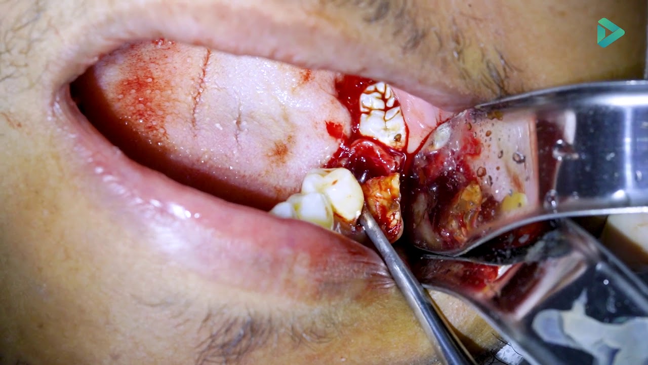 agora sim nós já temos espaço para que esse dente possa girar ligeiramente para digital então toda a porção medial desse dente pode ser adicionada consigo de uma alavanca e ao final do acerto ócio nós fazemos uma varredura e com a nossa cureta de lucas só para remoção dos detritos dos dribles e observe que durante o procedimento de sutura o cirurgião ele deve aspirar a região para que a gente consiga ter uma visibilidade adequada finalizada então o ponto de sutura nos cortamos deixando pequenas pontas do fio para que não incomodem demais o paciente portanto que a