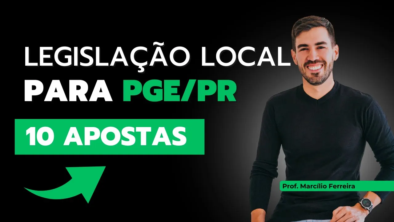 Neste vídeo vamos falar sobre 10 apostas para o concurso da pge do Paraná envolvendo legislação local e eu já quero te dizer que nesse concurso teremos sim uma intensa cobrança de legislação local tal como aconteceu na pge Goiás na pge de São Paulo e em outros concursos de procuradorias porque essa é uma forte tendência da atualidade Então vale a pena dar um gás no âmbito da legislação local em reta final e aqui no canal nós teremos alguns conteúdos para essa finalidade então já aproveite para se inscrever e não perder nada tudo bem então vamos direto
