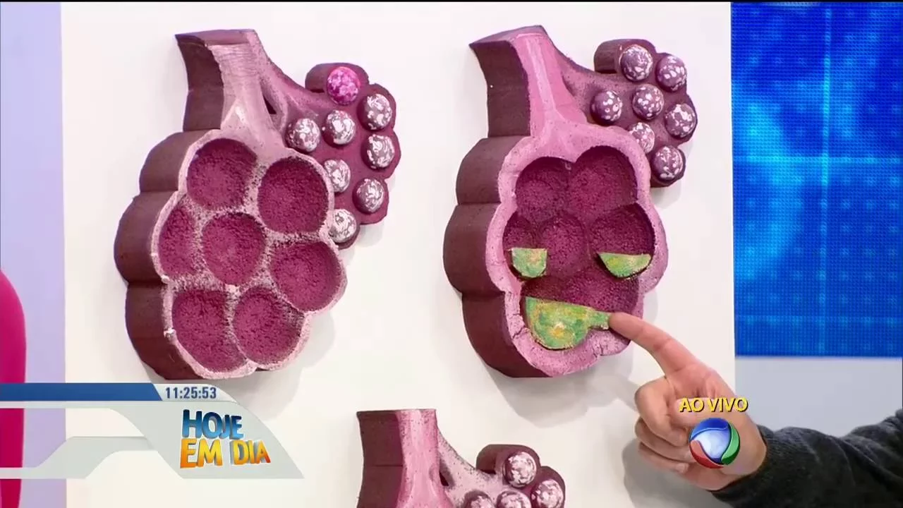 Santa Maria que mais de 200 pessoas morreram foi por pneumonia química entendeu isso é muito importante agora aqui Doutora a gente tá mostrando o Rai x estamos mostrando aqui um pulmão saudável e Ali temos o RX um pulmão doente o doutor vai explicar pra gente o que que é essa mancha aqui também ele vai falar sobre os mitos e verdades da pneumonia só que a Ana tem um recadinho pra gente em um minuto a gente já volta Aninha vem para cá agora porque o doutor vai nos Explicar sobre esse pulmão doente que tem essa manchinha