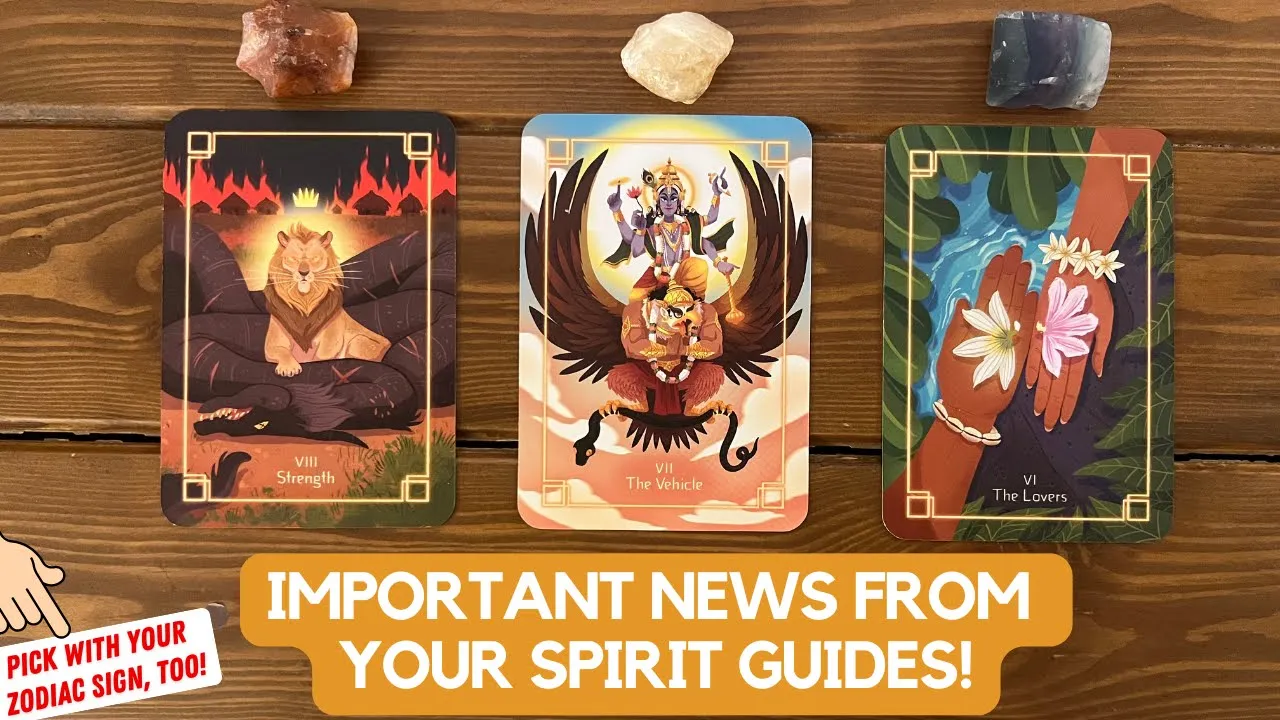 bye hi pile number two o looks like we're supposed to take these two cards What welcome to a reading today we're taking a look at important news from your Spirit guides these are the Decks that I'll be using if you're interested in knowing the names of any of them please note that I always list them down in the description box for you guys but very quickly let me introduce your pile to you so your crystal is the beautiful Catrine your significator card is the Chariot card and if you've picked your pile using your zodiac signs