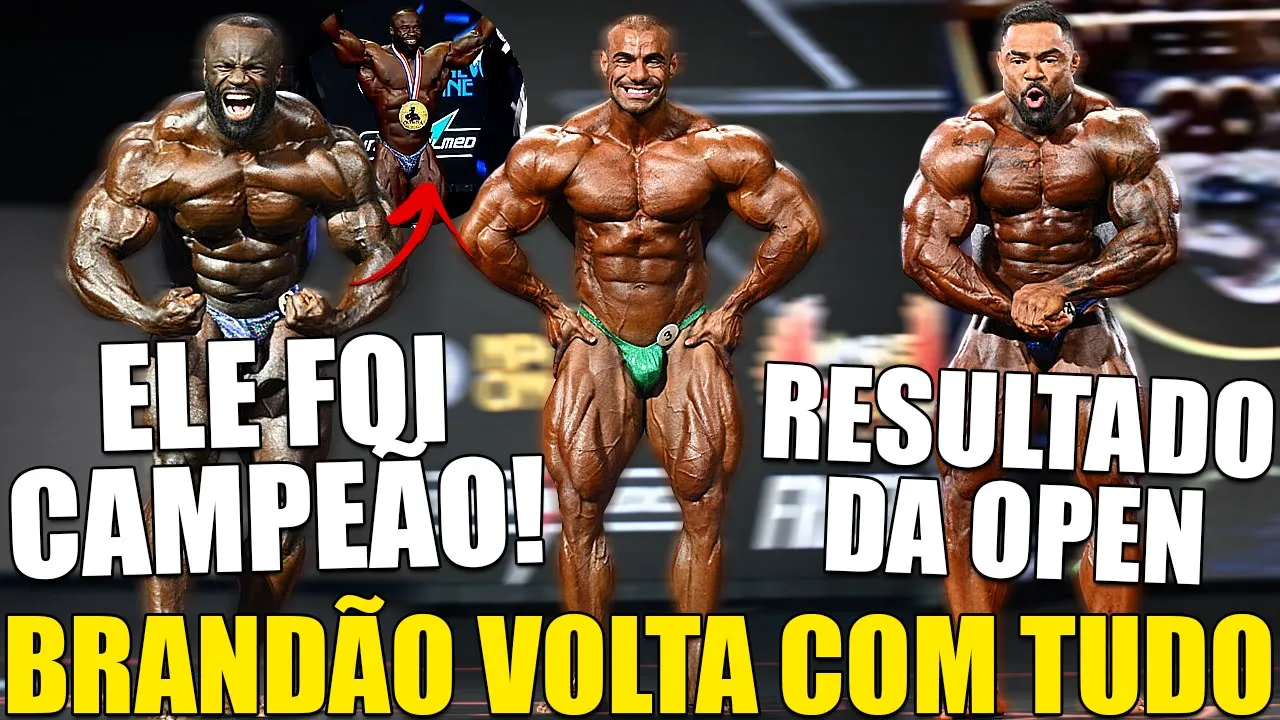 o Brandão voltou para as finais ainda mais confiante e esse ano ele acabou permanecendo dentro do Top 10 mas subiu posições porém a surpresa veio mesmo na vitória do samson dalda que é preparado pela sua esposa e se tornou assim o novo mister Olímpia o Edvan ficou no top cinco da M fisic representou demais mas dois brasileiros entraram dentro do Top 10 foi comprovado as camisetas Tech tshirt foram testadas e aprovadas e um teste para confirmar se elas realmente des amassam no corpo de forma mais rápida no teste foi utilizado uma camiseta meio a meio