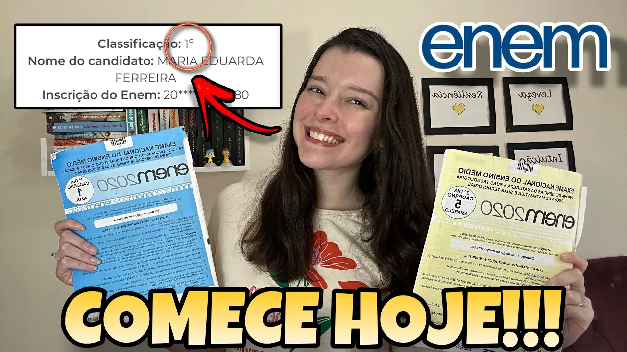 como começar a estudar pro Enem 2024 hoje sim gente falta um pouquinho menos aí de 5 meses para prova do Enem e eu sei que nesse momento tem muita gente desesperada que não começou a estudar ainda e sendo 100% sincera com vocês é mais difícil de você ter aquela preparação super completa nesses 5 meses mas é possível sim que você consiga a sua aprovação nesse tempo e você vai sair desse vídeo aqui com todas asas ferramentas para isso oi gente para quem não me conhece eu sou a Duda tenho 21 anos e sou estudante de