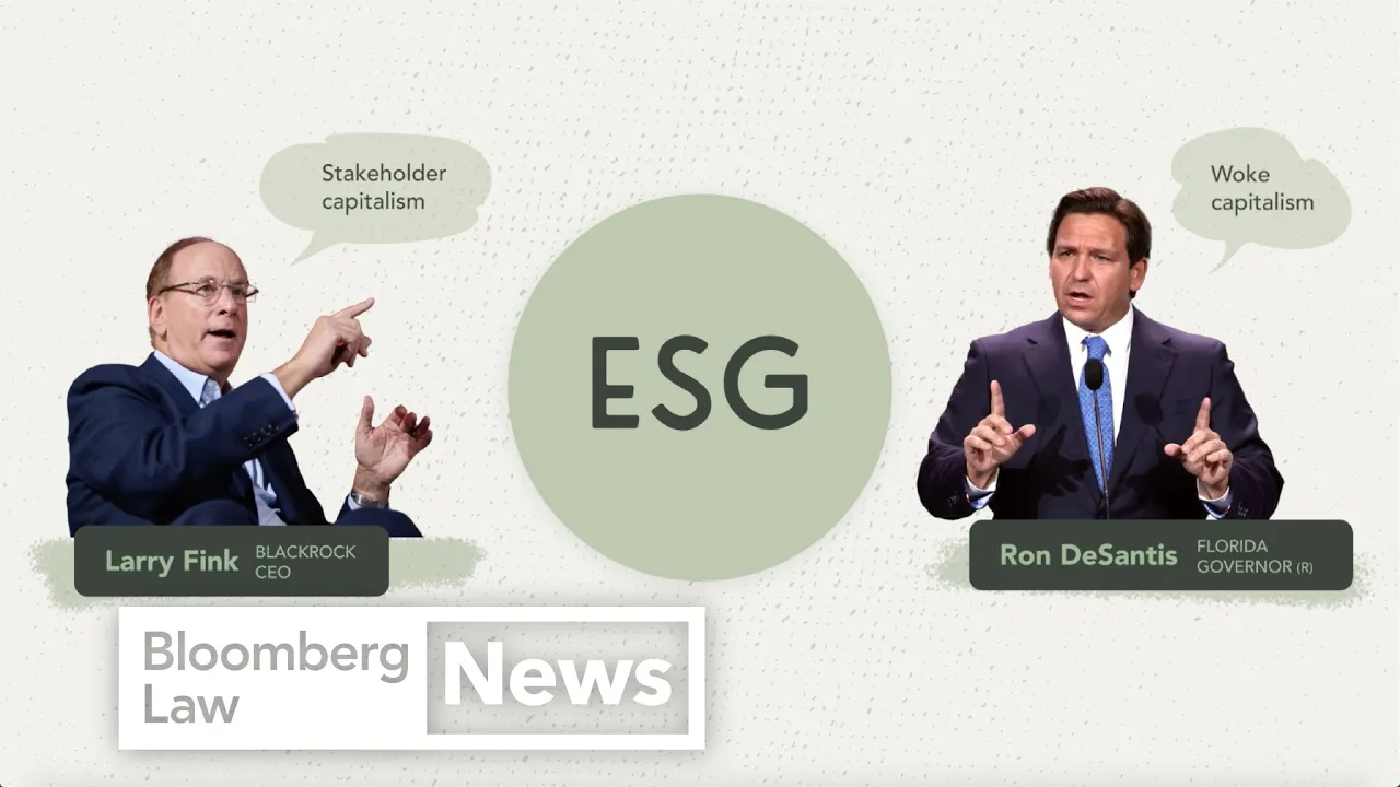 BlackRock is the police of this ESG movement BlackRock is coming under Fire from so many different directions Larry Fink calls it stakeholder capitalism conservative critics call it woke capitalism yet no one is in complete agreement on how to evaluate ESG Clara Hudson and Andrew ramonis report on ESG for Bloomberg law Andrew focuses on the E environment greenhouse gas emissions things like how severe weather impacts businesses and Clara reports on the S stands for the social side the relationships that companies have with their employees union rights diversity even abortion access the G stands for governance the