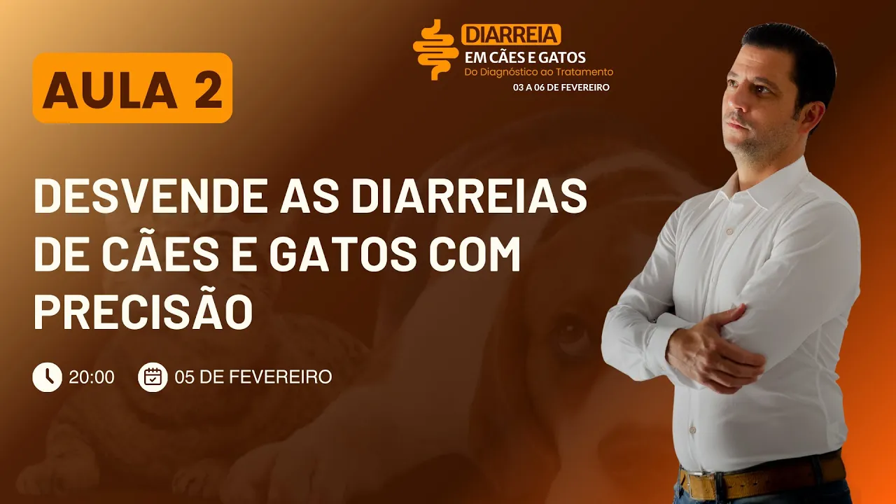 colegas aí de profissão é um curso bem bacana um curso bem completo e fica meu beijão aí pro pessoal na primeira aula mostramos a forma errada de conduzir casos clínicos de diarreia em cães e gatos a gente discutiu os principais erros que acabam atrasando o diagnóstico comprometendo a integridade dos pacientes e gerando insatisfação Por parte dos tutores esses erros podem Inclusive afetar sua reputação e a confiança nos seus atendimentos por isso se você não assistiu a primeira aula é fundamental que após essa aula aqui de hoje você vá até lá A gravação vai ficar disponível