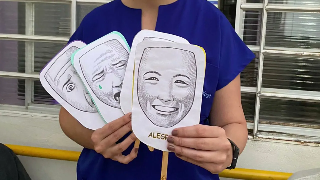 pessoa e por isso está impactando diretamente nas nossas relações interpessoais ainda assim muitas pessoas que querem de avaliar né e também de irregular esse domínio da cognição nos pacientes idosos a gente foca muito na memória na linguagem da atenção que de fato são importantes mas nós não podemos estar estimular a cognição social em especial nós somos psicólogos que trabalhamos principalmente com questões das emoções e do comportamento dos nossos pacientes portanto nessa atividade que eu vou mostrar para vocês e o elaborei algumas plaquinhas imprimindo Faces uma representação do Alegria e outra me apresentando um lindo a