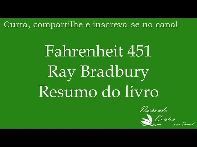 [Música] fahenheit 451 de Ray bradburry resumo do livro Gai montag é um bombeiro que queima livros numa cidade americana em um tempo futuro no mundo de montag os bombeiros iniciam incêndios ao invés de apagá-los as pessoas dessa sociedade não leem livros apreciam a natureza gastam seu tempo sozinhas pensam de forma independente ou travam conversas com significados mais profundos ao invés disso elas dirigem em alta velocidade assistem televisão em acesso e ouvem rádio continuamente através de aparelhos minúsculos adaptados nas suas orelhas montag encontra uma garota de 17 anos chamada clariss mclan ela abre seus olhos para