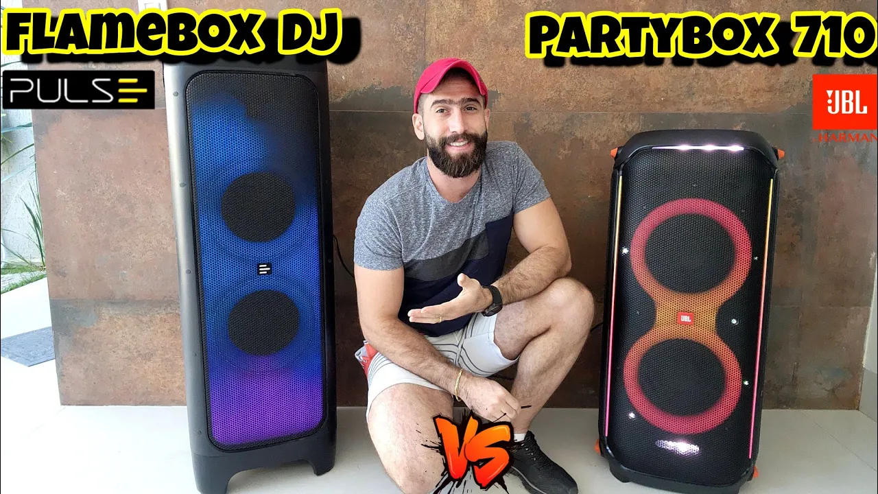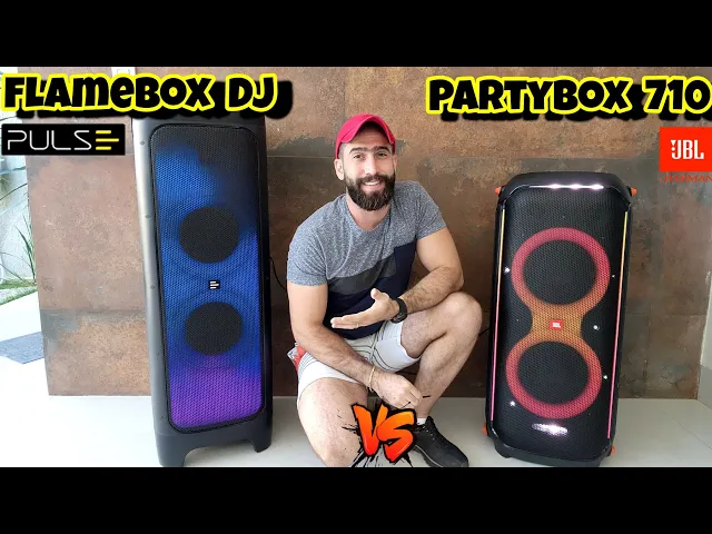 e chegou o dia mais esperado aí por muitos que é fazer o comparativo entre essas duas belezuras aqui de um lado temos a Pulse Flame Box DJ do outro lado temos a caixa de som da JBL a parbox 710 Neste vídeo vamos aí apontar nas principais características desses dois modelos vamos fazer também a batalha de áudio comparativo Quais são as diferenças qual que vale mais a pena você está comprando né questão de preços enfim se você ficou interessado também fique comigo até o final do vídeo já vai deixando o like para poder fortalecer né se