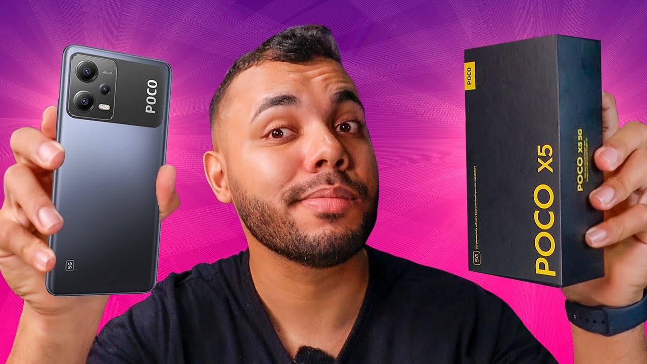 [Música] depois de conferir o pouco X5 pro temos em mãos a versão padrão que vem com o hardware mais Modesto sem abandonar a promessa de entregar uma boa experiência com preço justo aqui não temos a câmera de 108 MP ou tela com Dove Vision Mas será que tais tecnologias fazem realmente falta vamos conferir tudo que o pouco X5 tem a oferecer para ver se vale a pena compra o design do pouco X5 é bastante parecido com o da variante pro ao bloco gigante na cor preta na parte superior formada por peça menor de plástico brilhante