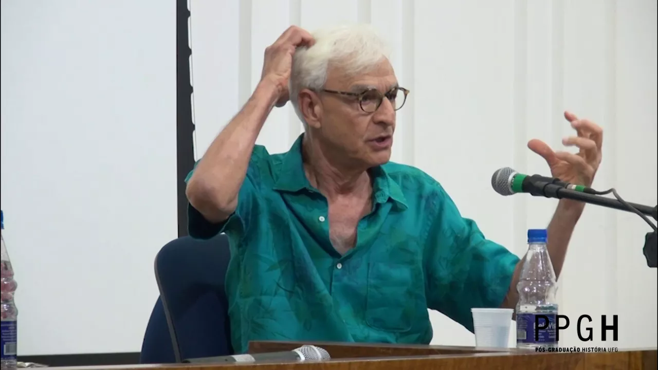 possa contar com os bons préstimos da celg a gente também terá que ser compreensivo Na medida do possível então é com muita alegria que eu passo a palavra o roberto e agradeço mais uma vez a sua presença aqui no programa de pós-graduação em história na universidade federal de goiás eu que agradeço o convite não é a primeira vez que eu estou e goiás gosto muito de voltar portanto aceitei o convite com 11 grande alegria mas além disso por saber que eu poderia contribuir Falando sobre o tempo em dois pensadores que me interessam nite e brust