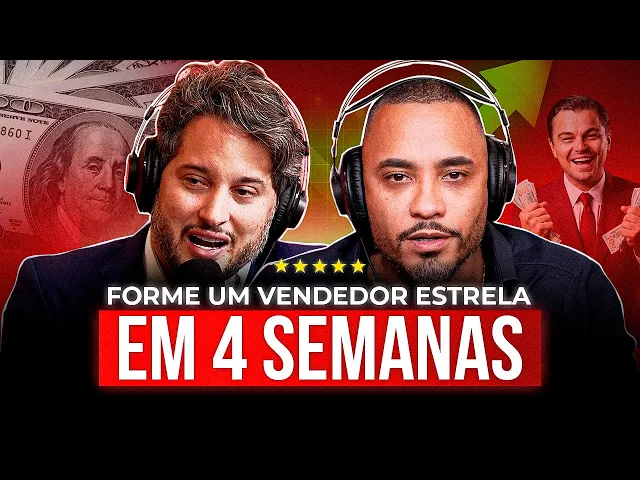 perguntou de treinamento, né? >> Uhum. >> A gente pegou todo o nosso processo e colocou em quatro semanas de treinamento. Então a gente quer pegar um Vendedor e colocar ele no ar em quatro semanas, >> tá? no primeiro momento, ele aprende o nosso processo de vendas, que são cinco etapas, ele estuda a empresa, ou seja, materiais sobre como a gente entrega podcasts, vê a análise de calls de vários outros closers, então é 9 horas de estudo. >> Então ele fica analisando como os outros closers estão fechando vendas para ele Poder replicar depois. >> Exatamente. Qual
