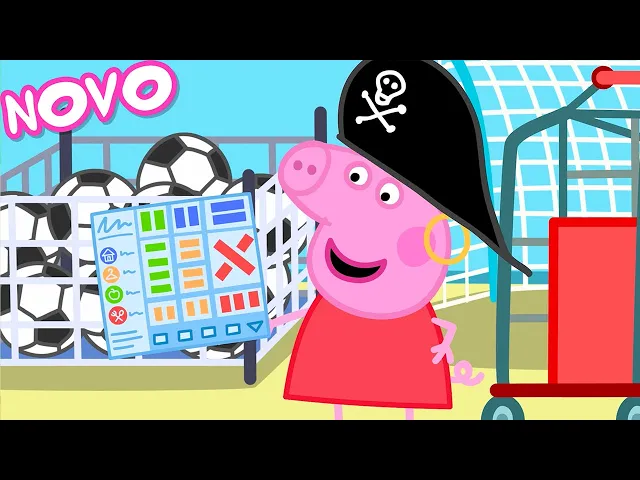 de bolas de futebol novas hum aonde está o capitão George e a capitã mamãe minha nossa Aonde eles Foram Aonde eles foram a capitã Peppa e o capitão papai se perderam do Capitão George e da capitã mamãe bem Que bom que nós temos o mapa do tesouro Y isso Podemos seguir o mapa até a sessão da cozinha perdida há muito tempo e encontrar Nossa tripulação lá então poderemos encontrar o abridor de latas Dourados juntos Os Pequenos piratas estão atravessando a grande loja para encontrar o abridor de latas dourado e uns aos outros Cuidado isso licensa