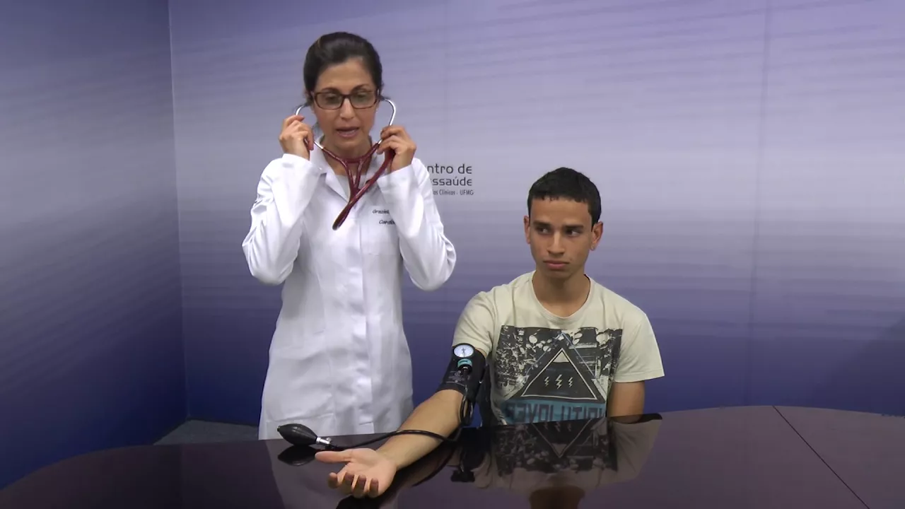 [Música] olá o objetivo deste vídeo é a demonstração da técnica correta de avaliação da pressão arterial sistêmica existem dois métodos de medida da pressão arterial sistêmica o primeiro considerado mais acurado é a medida invasiva da pressão arterial através da colocação de um cateter intraterritorial a chamada pia pressão entrar terial mas que é reservado às unidades de tratamento intensivo pacientes instáveis o segundo método não invasivo que é o que abordaremos aqui o detalhadamente hoje é obtido utilizando se um conjunto diz firmo manômetro estetoscópio e é aquele rotineiramente empregada nos pacientes ambulatoriais para uma medida correta adequada