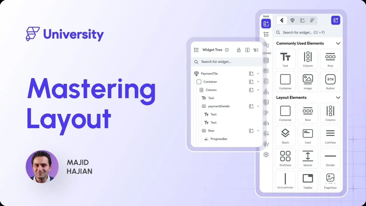 Layout arranges UI elements on the screen to create a visually appealing and functional interface. Therefore, understanding layouts is important because a structured layout enhances user experience, ensures content is easy to navigate, and makes the app responsive across various devices and screen sizes. Let's first have a quick review of what we have discussed about layout in module 6 to refresh our knowledge. To start with building layouts with widgets in FlutterFlow we should understand atomic design. We've seen how this structured approach Plays out in FlutterFlow, from the simplest elements to creating a fully fledged interface, which leads