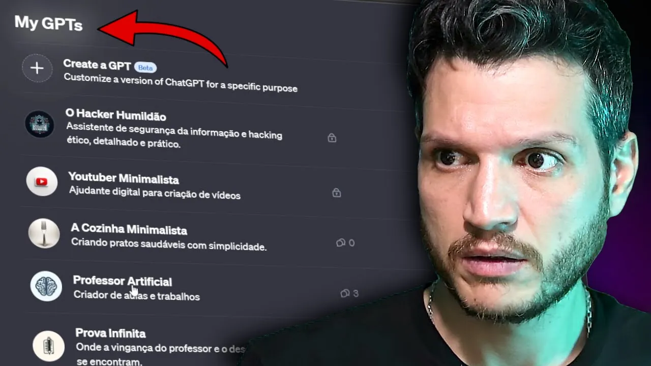 gente vai criar um chat deept do zero agora aqui calma nessa mesma linha de raciocínio eu criei um chat ept também para me ajudar dar aqui no YouTube né que eu chamei de youtuber minimalista Eu também Criei um chat APT para me ajudar na cozinha criando pratos saudáveis e práticos prova infinita isso aqui também isso aqui é interessante eu tenho aqui uma ia que vai criar as provas que eu preciso já que eu sou professor Só que já tá tudo configurado exatamente o tipo de prova que eu quero Quantas questões eu quero quantas alternativas Qual