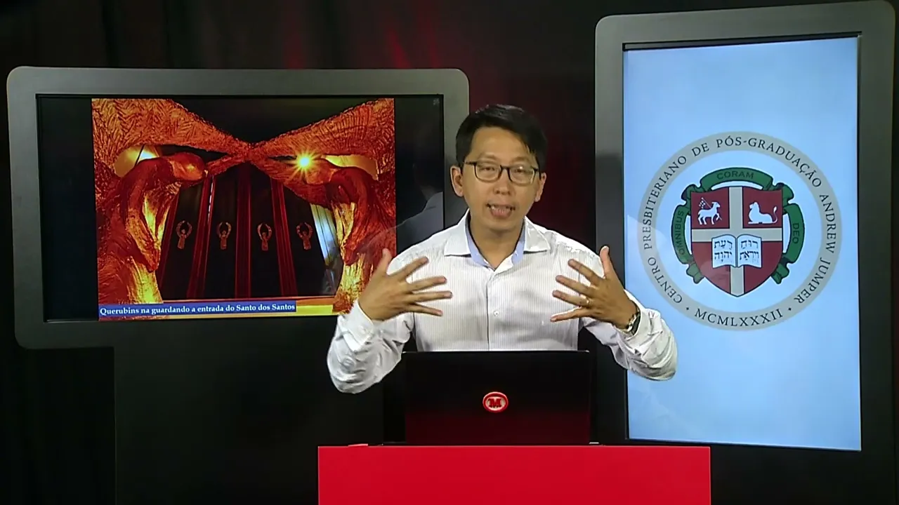 onde o profeta tem uma visão do templo sempre a entrada está ao Oriente Esse era o padrão o Templo de Salomão Onde ficava a entrada para direção do oriente Então não é uma mera coincidência que são elementos textuais que comprovam Justamente esse ponto o Jardim do Éden Foi sim de fato o primeiro tempo no Jardim do Éden haviam esses querubins colocados ali e na arca da aliança em cima do tampo estavam também simbolizados querubins na cortina no véu que separava o santo do santo dos santos também era um bordados imagens de querubins por fim nós