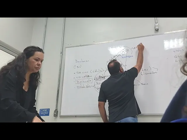 porque ó Então vamos agora para Professor dúvida vai cair aquela primeira aula dos laboratório Ah tá sim caiu uma questão dessas tá Labor de laboratório Professor uma DVA como uma bactéria elons uma reprodução sexual Não essa aí a gente fala que houve uma transformação não é conjugação conjugação né mas ela vai ela vai fazer uma uma transformação do Mat matal genética vai passar a expressar uma não tinha né mas a a transformação da o vírus né vai transferir uma matal genética né ela pode fazer isso bom então vamos lá para a questão de pared celular