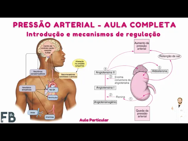 [Música] Beleza então a gente vai falar sobre regulação de pressão arterial quando a gente pensa então no sistema cardiovascular tá então assim a primeira coisa que a gente tem que entender é qual a importância da manutenção dos valores normais de pressão arterial porque quando a gente para para estudar o que que é a pressão arterial pressão arterial como o próprio nome sugere é a Pressão que o sangue exerce na parede dos vasos tá então que a gente vai chamar então de pressão arterial sistêmica tá E no caso né O que é mais comum é a