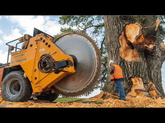 Extreme fastest dangerous big chainsaw cutting tree machines | Monster stump removal excavator #7