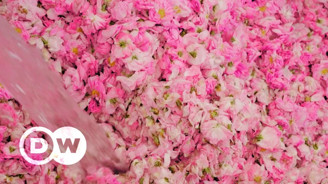 estamos no famoso vale das rosas na bulgária há séculos as rosas florescem na região em quantidade e beleza como em nenhum outro lugar do mundo a localização é perfeita para o cultivo muita chuva no inverno e bastante sol na primavera e no verão e usa damascena de rosa damascena têm grande concentração de óleo essencial por isso é a variedade de rosa mais procurado do mundo essa pequena flor silvestre garante que a fragrância viagem mundo todo a serem desatados ordem divertir em casa o zonda retângulos o especial da rosa damascena que atinge a maior concentração de