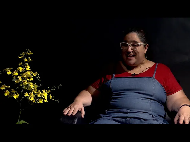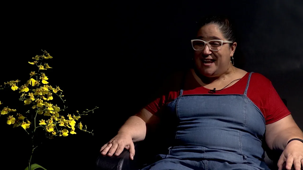 eu acabei optando por pegar mais aulas e me aprofundar mais com a professora. Né, enfim, o que que eu sou hoje, Roberto? E hoje eu sou uma batalhadora pela arte; e hoje eu levanto a minha bandeira pela cultura.