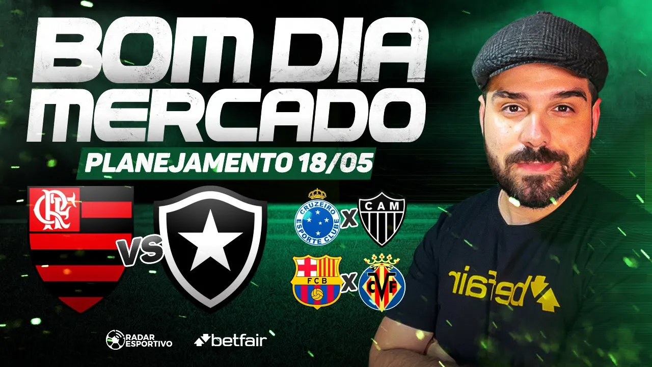 Estamos começando mais um planejamento de trabalho, mais um Bom Dia Mercado para esse domingo, dia 18 de maio. Dia cheio de jogos, principalmente jogos importantes aqui no cenário brasileiro, né? Temos clássico aqui no Rio de Janeiro, Flamengo e Botafogo, temos Corinthians e Santos em São Paulo, temos Cruzeiro e Galo em Minas, o Palmeiras enfrenta o embalado Bragantino, tem Bavi, cara, só jogo bom, né? O Fluminense também pega um time chato fora de casa que é o Juventude. Então tem jogo bom no brasileiro. Mas além do Brasileirão, nós temos. Vou passar pela última rodada da Bundesliga
