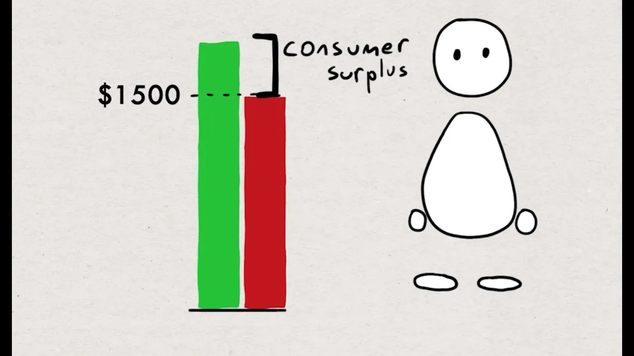 value to the consumer so this up here is the consumer surplus it's all the extra value they got from the trade and then we can imagine thousands of transactions and the consumer surplus is all of that extra value added together analyzing Surplus like this is how we determine the change in utility or value doing this in the wild is done by testing people's willingness to pay and observing Market data but many things are not bought and sold in a market and are just given for free from nature for example the pollination service is provided by