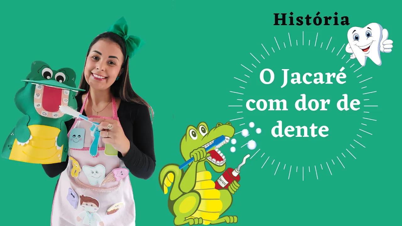 o Olá crianças nasça historinha de hoje é um jacaré com dor de dente E era uma vez um jacaré Amado toca ele teria estava muito esperto mas eu acho que eles não era tão esperto assim pois Joca vivia com dor de dente cada vez queria comer alguma coisa ou tomar Ele começava oi oi lado e para o outro só chorando e reclamando ai ai ui ui dor no meu dente que estava com muita dor de dente mas reto dia aparecer o seu amigo dentinho e falou para Joca que ele precisava cuidar mais dos dentes soca