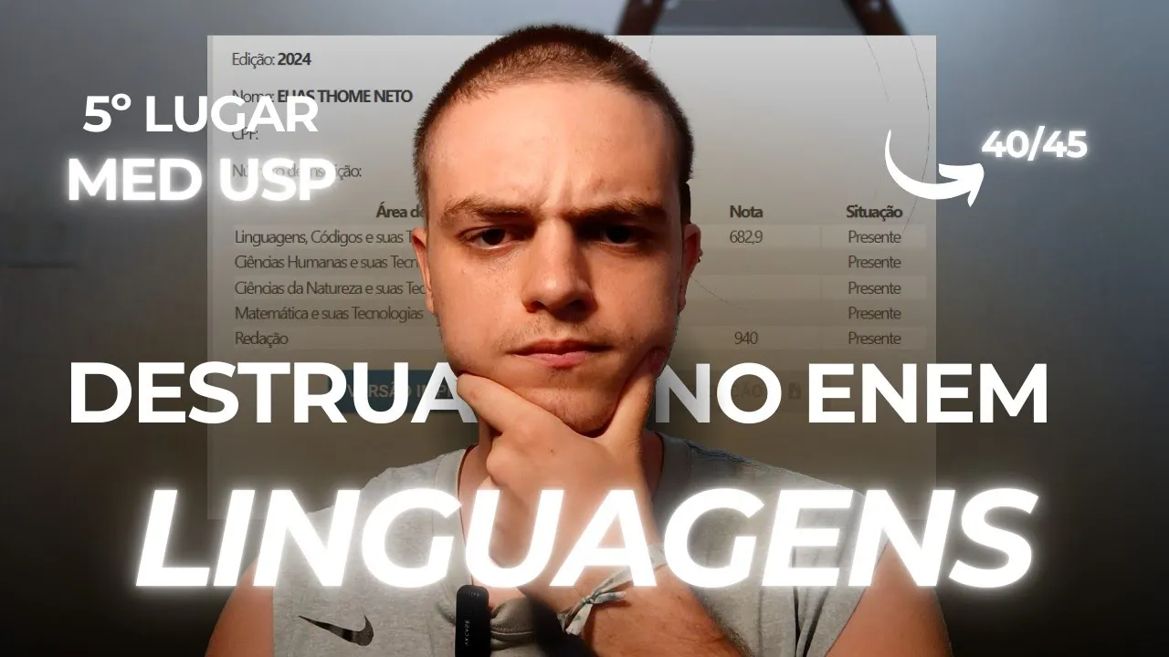 sejam todos bem-vindos a mais um vídeo meu nome é Elias Fui aprovado em medicina Naus pelo Enem e hoje eu vou falar sobre uma área da prova do Enem que é área de linguagem linguagens era a área que eu mais tinha dificuldade eu tive muita dificuldade de evoluir porque eu tinha uma ideia de linguagens que ainda era muito imatura eu tinha ideia Que linguagens era uma prova de pura interpretação e que eu não tinha como melhorar só se eu melhorasse minha interpretação de texto eu ia ter que ler e talvez contar com a sorte de