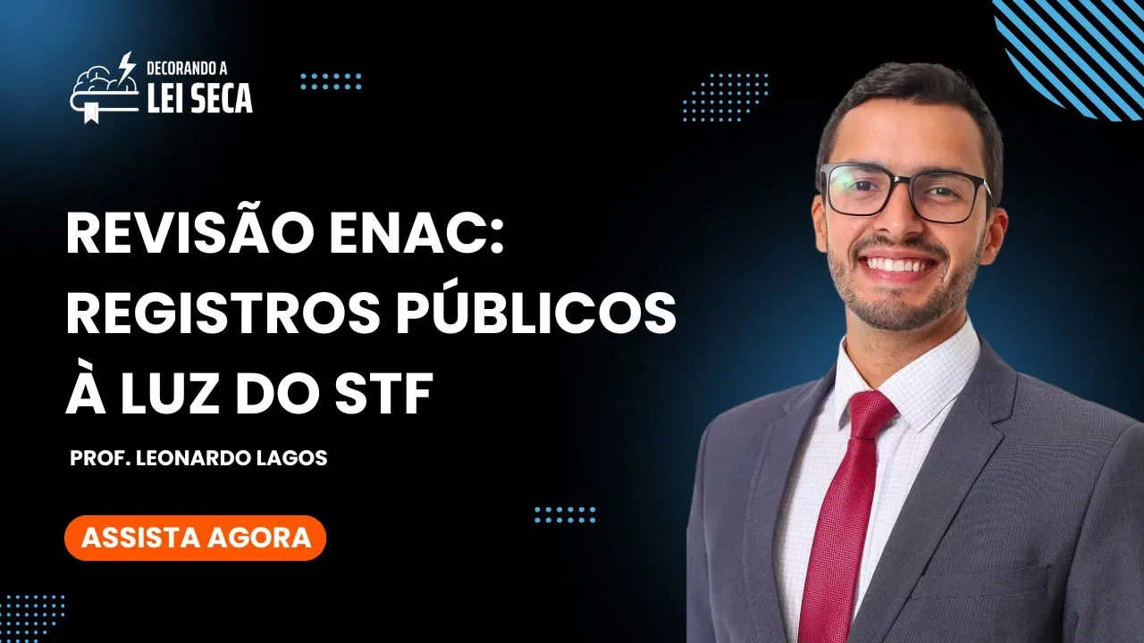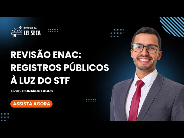 olá olá meus queridos amigos decorando a lei seca muito bem-vindos a mais uma aula de revisão pro próximo exame nacional de cartórios organizados pela FGV meu nome é Leonardo Lagos sou procurador federal professor e coordenador de diversos cursos aqui de Decorando da Lei Seca e como não podia deixar de ser nós decorando da Lei Seca somos vanguardistas em diversos materiais de estudo para cartórios o nosso fundador o nosso criador foi aprovado em todas as provas objetivas de cartório que fez então nós temos uma expertise bastante relevante bastante aprofundada em provas de cartório mas como vocês