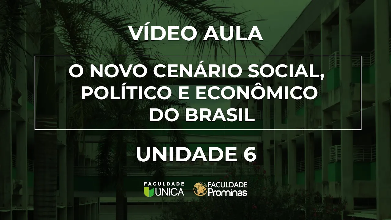 E aí E aí [Música] os alunos iniciaremos mais uma unidade na nossa disciplina teoria política já estamos a unidade 6 e essa unidade irá encerrar os nossos trabalhos durante todo esse percurso da disciplina nós temos vários assuntos aqui para discutir temas discutidos a formação do Estado a relação com capitalismo os ideais liberais na liberais o estado democrático de direitos enfim trouxe Temos vários assuntos desta vez nós iremos trazer um novo cenário social política e econômica do Brasil ou seja depois de todas emaranhado de situações e mudanças sociais políticas e econômicas Qual é o cenário que