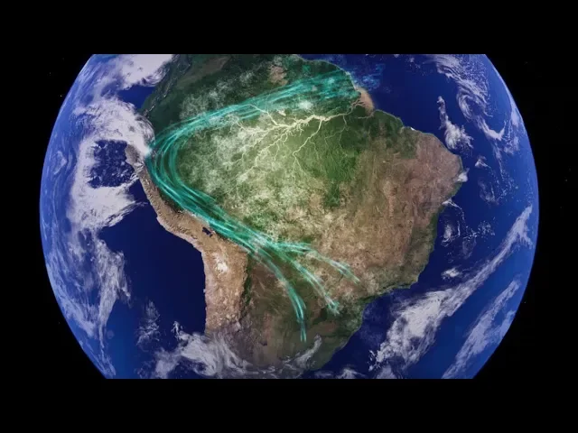 floresta são mais fortes que sobre o mar a floresta amazônica atua como uma bomba de mostrar érika sugando a umidade a única que se condensa em enormes volumes de vapor chamados rios voadores os ventos carregam estas correntes de umidade para os andes onde se redirecionam atingindo o sul do brasil o paraguai o uruguai e argentina hoy a marcar a manhã em soul e vem segundo este modelo a bomba biótica as florestas intactas criam seu próprio clima elas não só evapora com gotas de água como sugam massas de ar úmido dos oceanos como a biosfera da