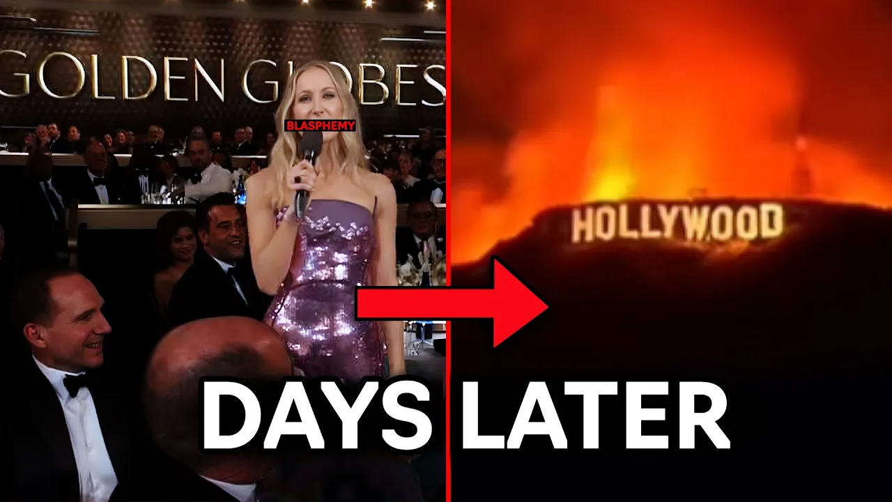 welcome to the 82nd Golden Globes you were incredible in Dune woke up for all of your scenes you what a year you've [Applause] had Glen you go that was before moms are holding strong with three shoutouts God creator of the universe zero mentions mocking God and using his name as a c word is nothing new for Hollywood but less than 48 hours after the golden globe's blasphemy Hollywood was on fire tonight a new fire breaking out late this evening in the Hollywood Hills who would have ever thought this Los Angeles is on fire I talked