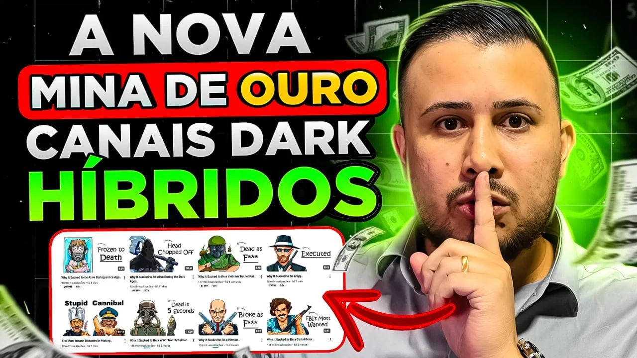 E se você permanecer comigo nesse vídeo aqui, você vai sair daqui sabendo o que é e como fazer um canal dark híbrido, que é a verdadeira revolução dos canais dark no YouTube. A nova era dos canais darks já se iniciou há algum tempo lá na gringa e está se iniciando nesse exato momento aqui no Brasil. Se eu fosse você, permanecia até o final desse vídeo para que você não fique para trás e consiga também colocar a mão na grana e fazer muito dinheiro de uma forma simples, prática, sem precisar aparecer no conforto da sua casa e sem precisar prestar contas para nenhum chefe.