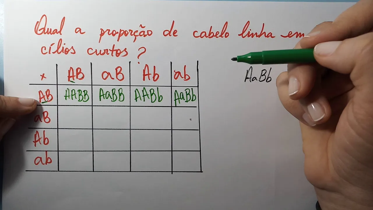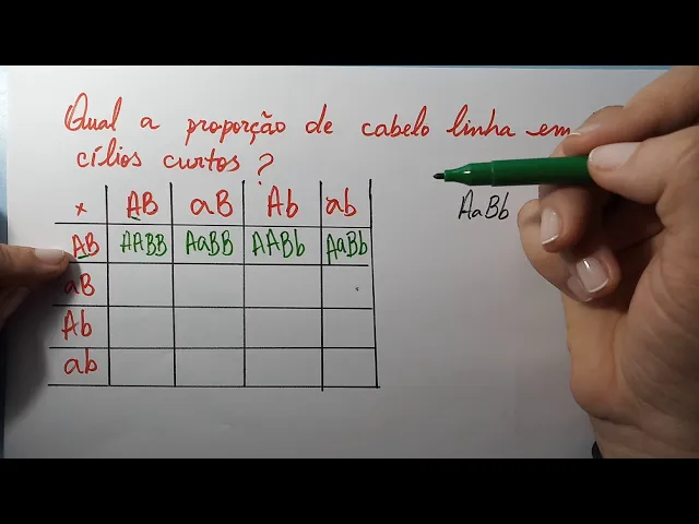 azão azinho azão azinho azinho azinho azinho azinho para que tenha né o pêlo preto então a gente vai ter o que um pelo preto tem começar com asão a gente vai ter a metade dos indivíduos com pêlo preto e infração vai simbolizar um sobre 21 eu assisti é tenham não é o pelo longo a gente vai fazer o cruzamento aqui como é que fica beijão beijinho beijão beijinho beijinho beijinho beijinho beijinho então aqui a gente observa que para ter o pelo longo para ser beijinho beijinho nós também teremos a metade e muito sobre dois ou