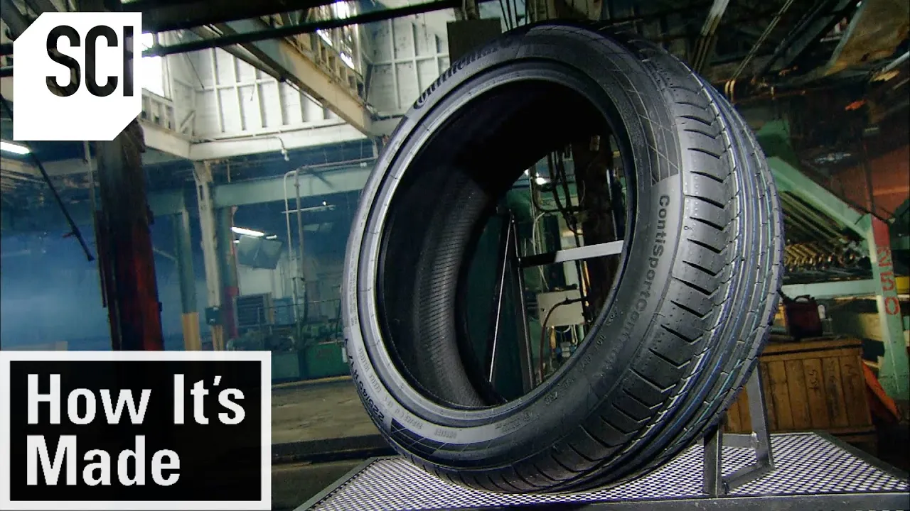 Car tires have come a long way in the last century. The modern summer tire is made of 10 to 15 different components which include natural and synthetic rubber, chemical additives, and carbon black, a pigment. Giant blenders mix these ingredients under heat and tremendous pressure.