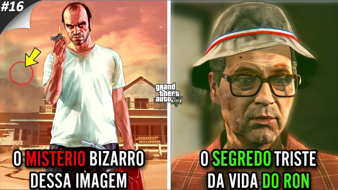 Inclusive, para quem curte mistério, já clica aqui em cima no card do iceberg do GTA V, que tá muito top, tem muita coisa filé. Agora, por último, mas não menos importante, eu queria que vocês soubessem de um bagulho, mano: durante o jogo todinho, a gente vê o Ron, né, que é o parceiro lá do Trevor, falando muito sobre o divórcio dele, que a mulher dele fodeu ele no divórcio e tal. Isso acontece bastante, né?