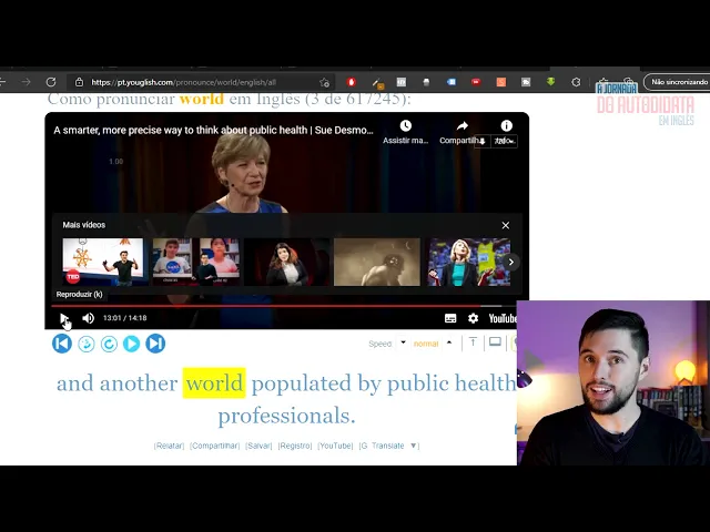 [Música] o rio What's Up guys na aula de hoje eu vou apresentar para vocês a ferramenta do iOS xe tem uma ferramenta que vai ajudar muito na questão da pronúncia e também principalmente na questão do listening essa ferramenta é parecida com o YouTube Então vai ter lá uma barrinha para você pesquisar as coisas e na verdade ele até usa o YouTube como base inclusive os vídeos né do YouTube então aqui na tela eu vou abrir para vocês entenderem melhor esse processo na prática Então esse aqui é o site do Yuri você pode ir simplesmente procurar