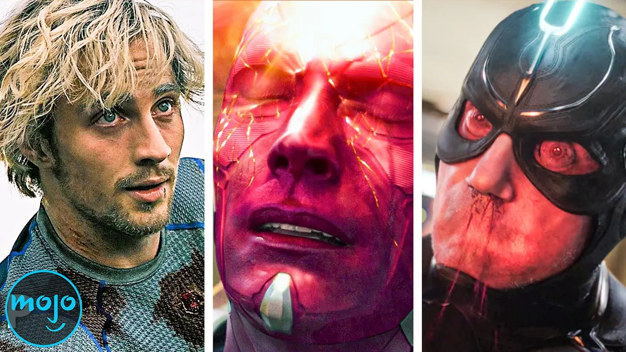 could let go we're going to be okay you can rest now as his light flickered out we doubt there was a dry eye in the house number seven Quicksilver Avengers Age of Ultron patro maximoff and his sister Wanda started off as sworn enemies of the [Music] Avengers you didn't see that coming but after spending some time with the sadistic Ultron they change their tune and switched to the good side during the climax in sovia the city is flooded with Bots and the heroes do their best to get everyone to safety as Hawkeye holds a child