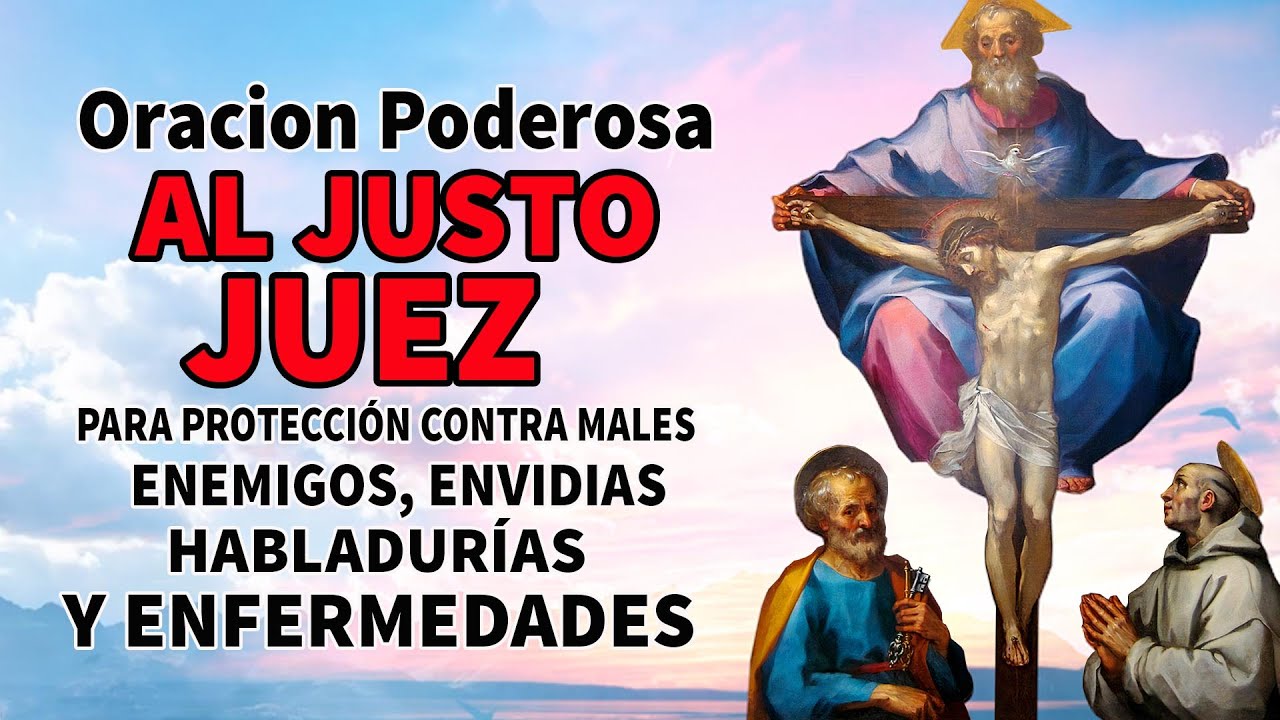 y presenta justicia donde hay injusticia cura donde hay enfermedad y consuelo a los corazones afligidos que tu bondad y misericordia se extiendan a todos los necesitados trayendo esperanza y alivio en tiempos difíciles agradezco justo juez por escuchar mi oración y por estar a mi lado en todo momento Confío en Tu fidelidad y en el poder de tus bendiciones que mi vida sea un testimonio de tu amor y Justicia santísimo justo juez protector celestial de los justos y guía de los devotos te pido que no permitas que los obstáculos interrumpan mi camino No dejes que mis