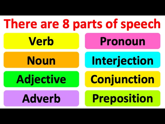 [Music] there are eight parts of speech verb noun adjective adverb pronoun interjection conjunction preposition these allow us to structure a grammatically correct sentence as each has a different function within a sentence verb a verb describes an action or experience for example run walk push eat sophie ran to school because she was late the verb in this sentence is ran john loves to bake cookies the verb in this sentence is bake noun a noun names a person place things or ideas for example house teacher cup shop my teacher is a very nice person the noun in