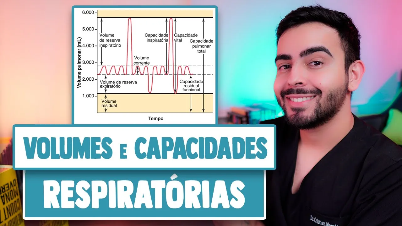 e eu tava meio sem ideia do que gravar para esse vídeo de hoje E aí eu pensei eu tenho alguns vídeos de fisiologia que no canal que são bem longos Então por que que não pega algum tema dentro dessas aulas ali e tento resumir em um vídeo curto de medicina resumida E é isso que eu vou fazer no vídeo de hoje o assunto do vídeo vai ser sobre fisiologia respiratória e especificamente os volumes respiratórios nesse se interessa nesse assunto fica até o final do vídeo nem que me chamar até os médicos Você tá assistindo mais um vídeo do quadro medicina resumida antes da gente continuar o vídeo eu te convido a se inscrever no canal ativar o Sininho de notificações ali embaixo frente não se esquece do like comentário que são muito importantes e também do botão Como partilhar ali em baixo do vídeo nesse botão você consegue Compartilhar esse vídeo em qualquer rede social com qualquer pessoa inclusive no WhatsApp ou vamos falar um pouquinho de volumes respiratórios pessoal para a gente tá aprendendo fisiologia respiratória a gente encontra esse gráfico aqui onde ele apresenta para a gente alguns volumes respiratórios e capacidades esse e esses volumes pessoal representa um volume de aqui entram ou saem ou até mesmo que permanecem no pulmão em dado momento da nossa respiração e lembre-se me dado muito importante antes de eu continuar explicação que quando eu falo de respiração eu estou dizendo tanto do momento da Inspiração quanto no momento da inspiração e quando eu falar só de inspiração ou expiração eu estou falando de cada momento separado mesmo o primeiro volume que a gente tem para estudar é o volume corrente como diz o nome volume corrente algo corriqueiro volume corrente aquele volume que entra e sai do seu pulmão durante uma respiração tranquila aquela que você não tem que fazer força nenhuma por exemplo se você está assistindo esse vídeo sentado ou deitado você está utilizando apenas o seu volume corrente durante a sua respiração são aproximadamente 500 ml que entram e saem do pulmão a cada respiração o segundo volume corresponde ao volume de reserva inspiratória Olha o nó o nome de reserva inspiratória ou seja é uma reserva que eu tenho para inspirar além daqueles 500 ml que eu já inspirei do meu volume corrente Vamos fazer um teste ó eu tô respirando normal E aí eu vou inspirar meus 500 ml sem fazer força né então inspirei nos 500 ml agora vou fazer uma força para inspirar mais e essa quantidade de área que acabou de entrar no meu pulmão corresponde ao meu volume de reserva inspiratória que é de aproximadamente 3. 000 ml lembre-se quando a gente inspira esses três ml Eu Não Posso manter eles nos meus pulmões porque eu tenho que soltar esse quantidade de ar se não vou ficar com uma caixa torácica né super dilatada ali eu não vou conseguir nem falar mais direito eu não tenho que experienciar para voltar a usar só meu volume corrente e continuar a minha conversa tranquilamente se nós temos o volume de reserva inspiratória Nós também temos um volume de reserva expiratório esse volume representa a quantidade de área que eu consigo esse pele ou seja inspirado novo mão após aquele volume corrente é um vão fazer de novo teste eu tô respirando aqui tranquilamente aí eu expirei os 500 ml sem fazer força ó úteis tem que fazer força e agora eu vou assoprar eu vou pegar o balão vou assoprar e esse aqui é o solto é o volume de ar que já tá na minha caixa torácica enquanto eu tô respirando tranquilamente é o valor de 1000 e 100 ml que estão ali na minha caixa torácica prontos para serem inspirados caso necessite e agora será que na hora que o sol todo esse ar ainda tem algum valor de ar dentro do meu pulmão e a resposta é sim dentro do pulmão ainda permanecem 1200ml que é o volume residual volume este que não pode ser jogado para fora do pulmão porque o pulmão é um balão e corre risco de coloco sabe então nós sempre vamos manter esse valor de ar para evitar o colapso do pulmão viram que é fácil volume residual volume de reserva inspiratória e expiratória e volume corrente não tem nada difícil nesse assunto agora vamos falar um pouquinho das quatro capacidades quando a gente fala de capacidade de ação a soma dos volumes por isso que chama de capacidade a primeira capacidade que a gente tem precisar é a capacidade inspiratória nome já fala é a capacidade de ar que eu consigo inspirar e isso vai ser durante a inspiração forçada Ou seja eu inspiro 500 ml que é o do volume corrente mais os três mil da minha reserva inspiratória então 500 mais 3 mil é igual a 3. 500 esse valor da minha capacidade inspiratória agora esse eu não estou inspirando eu acabei de inspirar né no meu volume corrente e aí eu expirei aqueles 500 ml do meu volume corrente né soltei E aí eu paro minha respiração tranquei Será que tem o valor de ar dentro no pulmão tem nós sabemos nós temos aquele 1200 do volume residual e nós temos aquele 1100 que corresponde a reserva expiratória então 1100 mais 1.