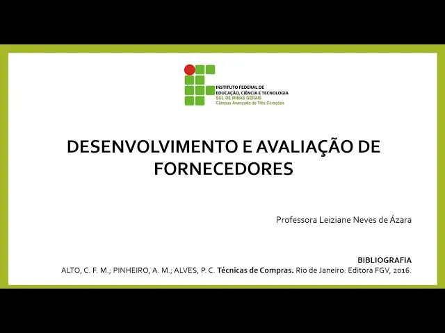 mercado para ver se não tem uma opção melhor e que vai atender melhor as necessidades da empresa né E aí a gente vem para o conteúdo que é conhecido como desenvolvimento de fornecedores o que que é o desenvolvimento de fornecedores é quando a empresa ela tenta é transformar no seu fornecedor para fazer com que ele ofereça o que a empresa realmente é precisa tá então sempre que for conveniente para empresa às vezes ela precisa ali fazer uma avaliação reduzir um custo né por qualquer motivo Pode ser que aquele fornecedor seja substituído ou pode ser que