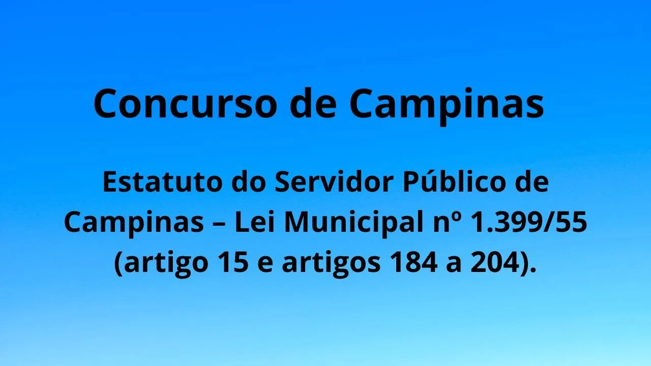 Olá pessoal do canal do Professor Fábio Inácio hoje eu estou aqui para falar da Lei 1399 né que dispõe sobre Estatuto dos Funcionários Públicos de Campinas e que vai cair aí para um monte de cargos né E também vou deixar na descrição do vídeo os parceiros né do canal que estão com cursos aí para este concurso Tá bom vou deixar lá você dá uma olhadinha tá na descrição do vídeo viu gente tá bom olha só lei 1399 de novembro de 1965 e nós vamos ver claro uma parte que tá pedindo lá no edital certo a