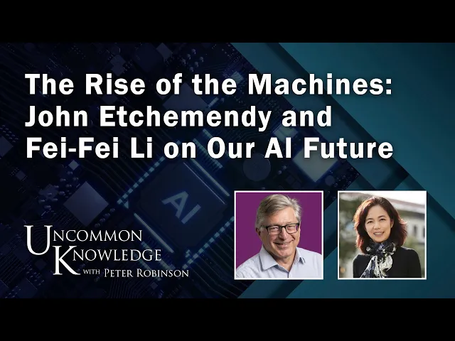 the year was 1956 and the place was Dartmouth College in a research proposal a math professor used a term that was then entirely new and entirely fanciful artificial intelligence there's nothing fanciful about AI anymore the directors of the Stanford Institute for human- centered artificial intelligence John aimi and Fay Fe Lee on uncommon knowledge now [Music] welcome to uncommon knowledge I'm Peter Robinson philosopher John chendi served from 2000 to 2017 as Provost here at Stanford University Dr ermeni received his undergraduate degree from the University of Nevada before earning his Doctorate in philosophy at Stanford he earned