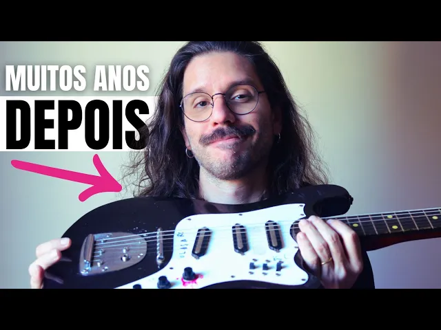 gente essa aqui é a minha primeira guitarra da vida é uma tonante dos anos 90 super rústica comprada lá em Porto Velho Rondônia na época em que minha família morávamos lá e foi inclusive quando eu comecei a tocar guitarra e fazia muito tempo que eu nem abri o estojo dela ela tava guardada lá na casa dos meus pais e essas cordas aí devem ter uns 25 anos de idade faz umas semanas que eu resolvi buscá-la só para ver como ela tava mesmo só por curiosidade e eu percebi que ela nem tava funcionando mais então eu