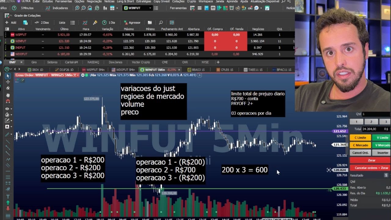 Hoje eu tô aqui para te ensinar uma estratégia de Day trade que colocou R 4025 no meu bolso logo pela manhã eu vou te mostrar passo a passo como eu fiz isso já te adianto que eu não acertei todos os trades tiveram operações que deram prejuízo que deram Stop E para isso eu coloquei nesse gráfico aqui do lado tudo que eu fiz todas as operações que me conferiram esse resultado de 4025 Exatamente pra gente começar a nossa web série o melhor ano da sua vida eu vou usar essa mesma estratégia que são variações do meu